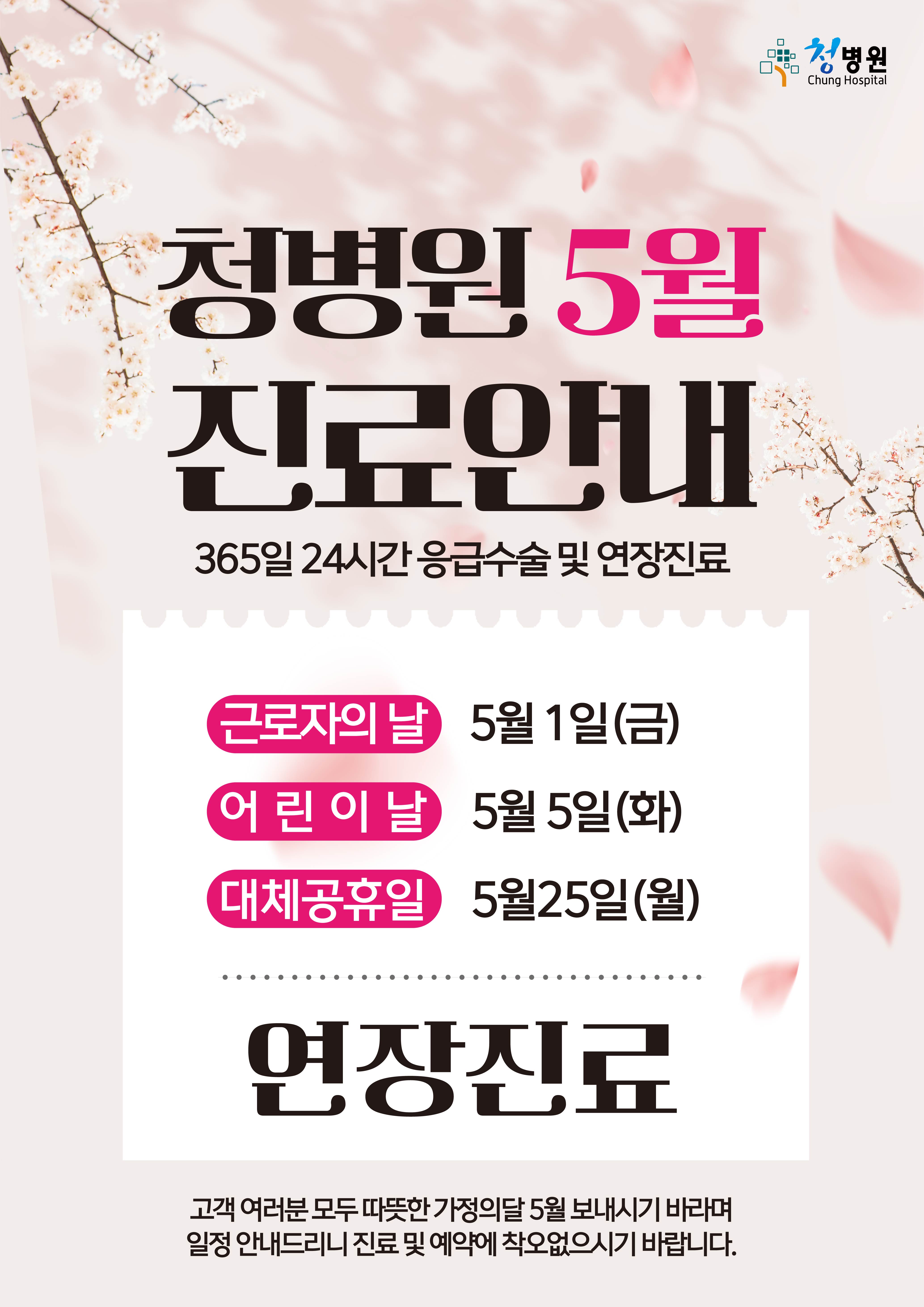 5월 1일(금) 근로자의날 연장진료
